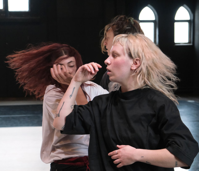 To begin this winter edition of Compagnonnage 23, Danièle Desnoyers is back again and developing a research and creation workshop in collaboration with eight performers, new encounters, and others renewed. For several years now, her creative processes have been infused with long phases (phasis) that become more complex over time like minimalist music. These developments make appear a tumultuous matter, states of body in progress. Then how to invest these interior spaces which transport us, carry us away and shape us? What if a state of resistance was deployed within a maelstrom, a vertiginous circle where a semblance of unison would become the engine of a form of agentivity on what we are?